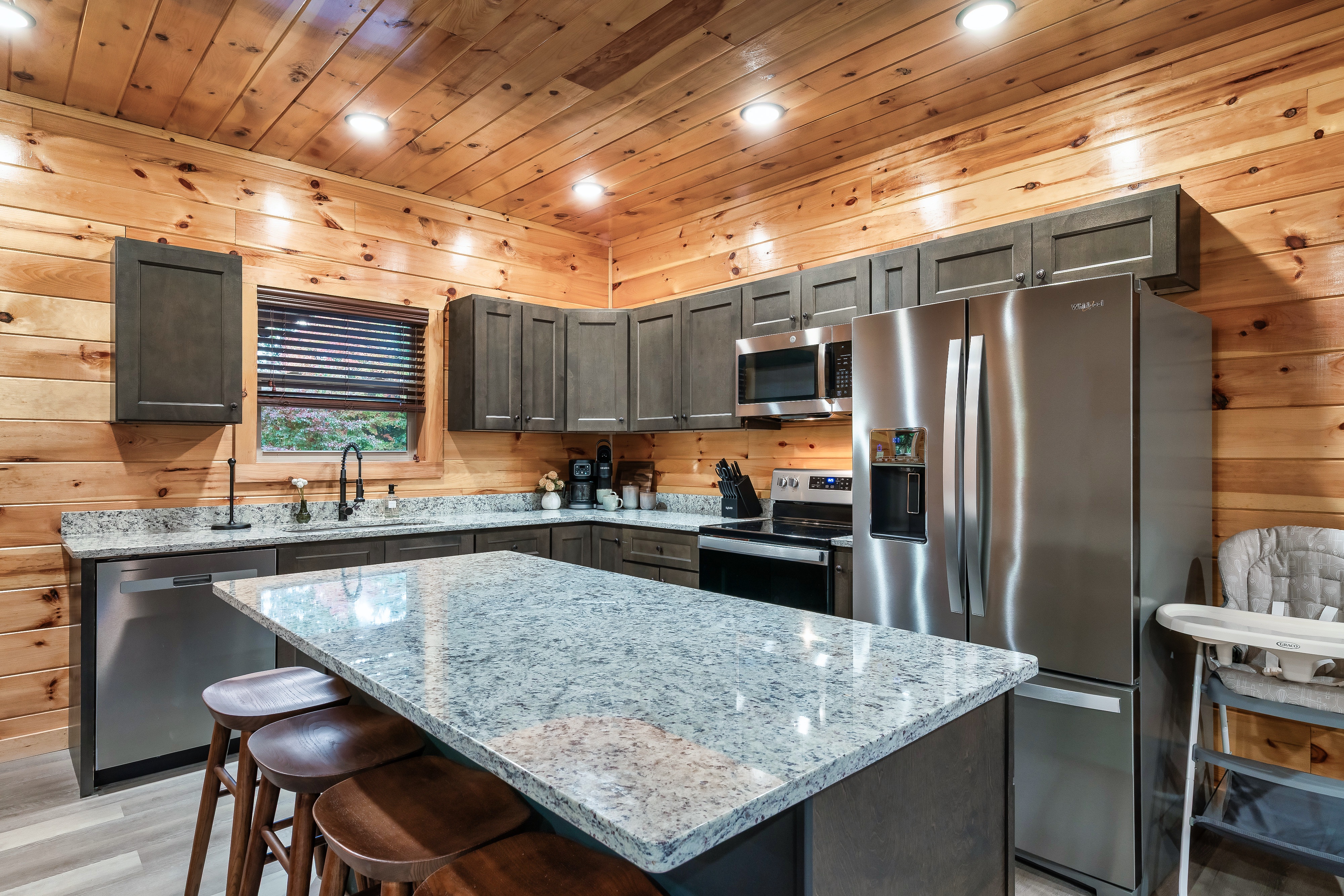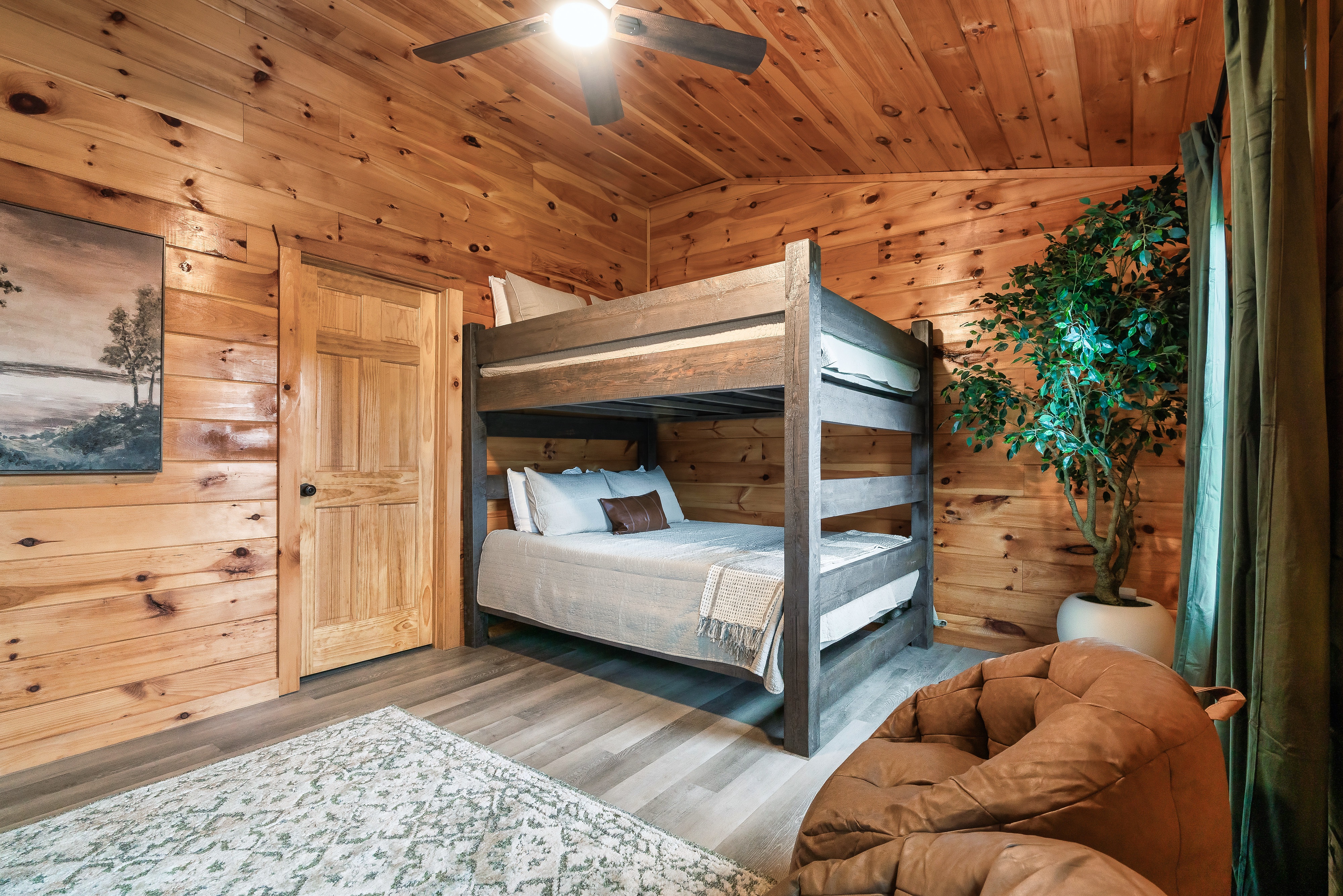 This stunning 4-bedroom cabin has 4 full baths, 2 half baths features two king ensuites with huge bathrooms. It is perfect for large or multiple families. There is an indoor heated pool and a hot tub for year round fun. Our other amenities include air hockey table, propane fire pit, large outdoor dining area with charcoal grill, great Wi-Fi, game console table, 6 Roku TVs, fully equipped kitchen, Pack & Play, and a high chair. We want to make traveling as a family easier than ever.