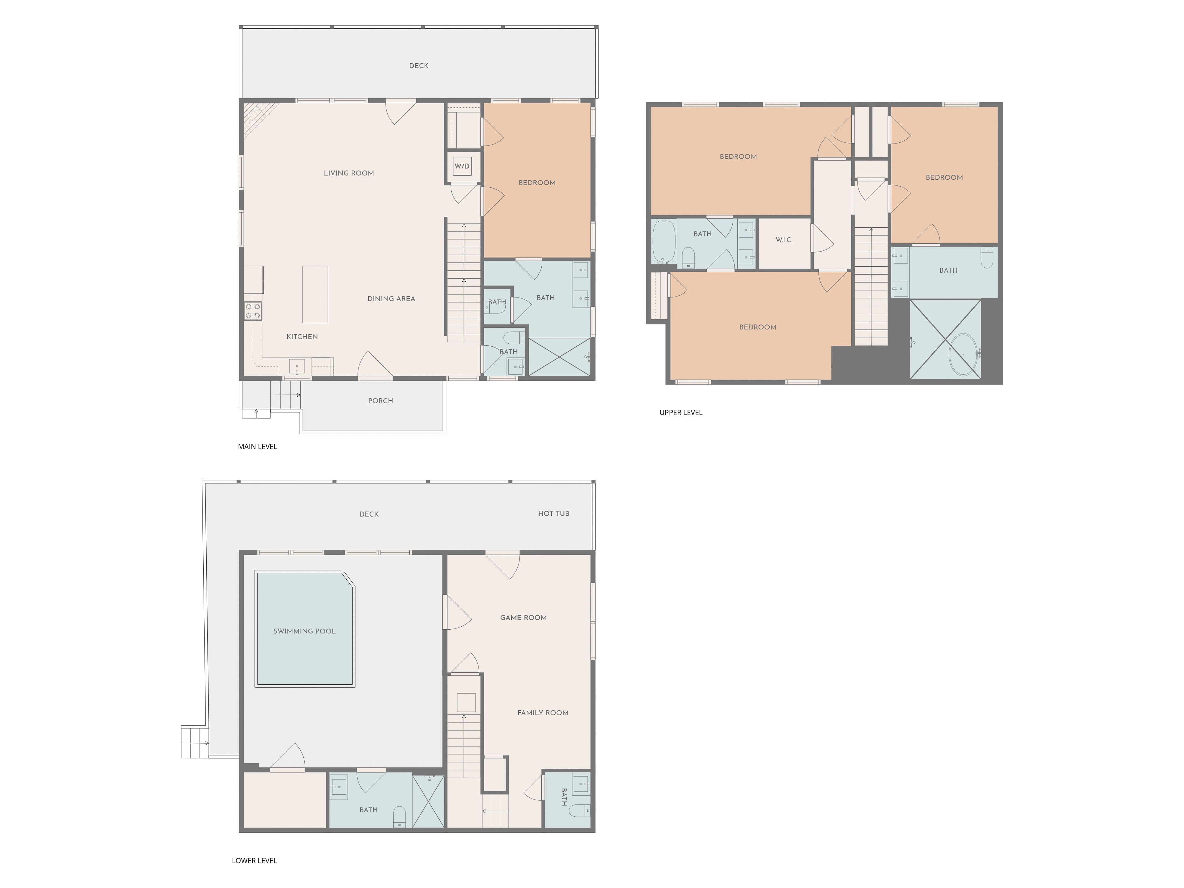 After a day of exploring, unwind with dinner on the deck, a soak in the hot tub, music by the fire table or a family movie night on the big screen. Every floor of